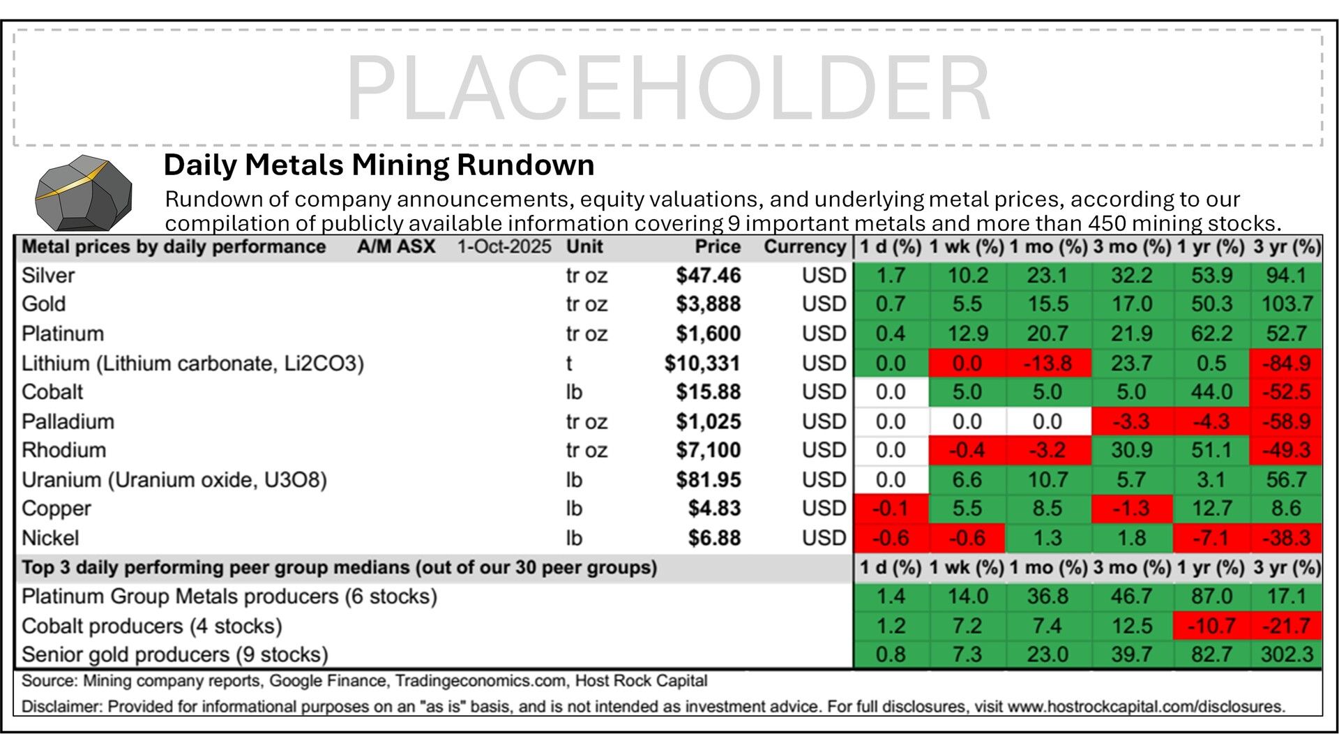 - Daily Metals Mining Rundown for 1 Oct 2025 (after-market ASX)