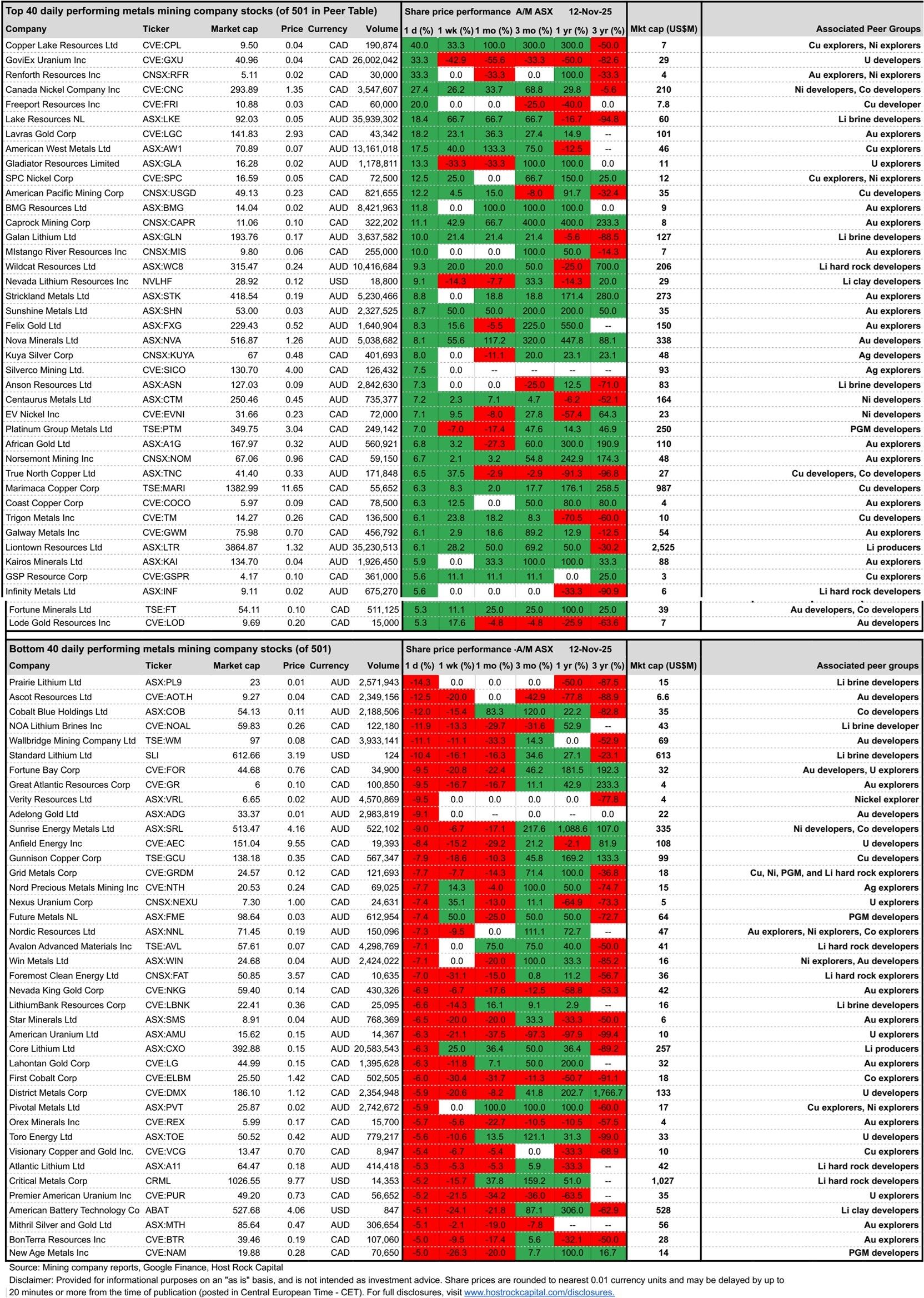 Daily Metals Mining Rundown for 12 Nov 2025 (after-market ASX)