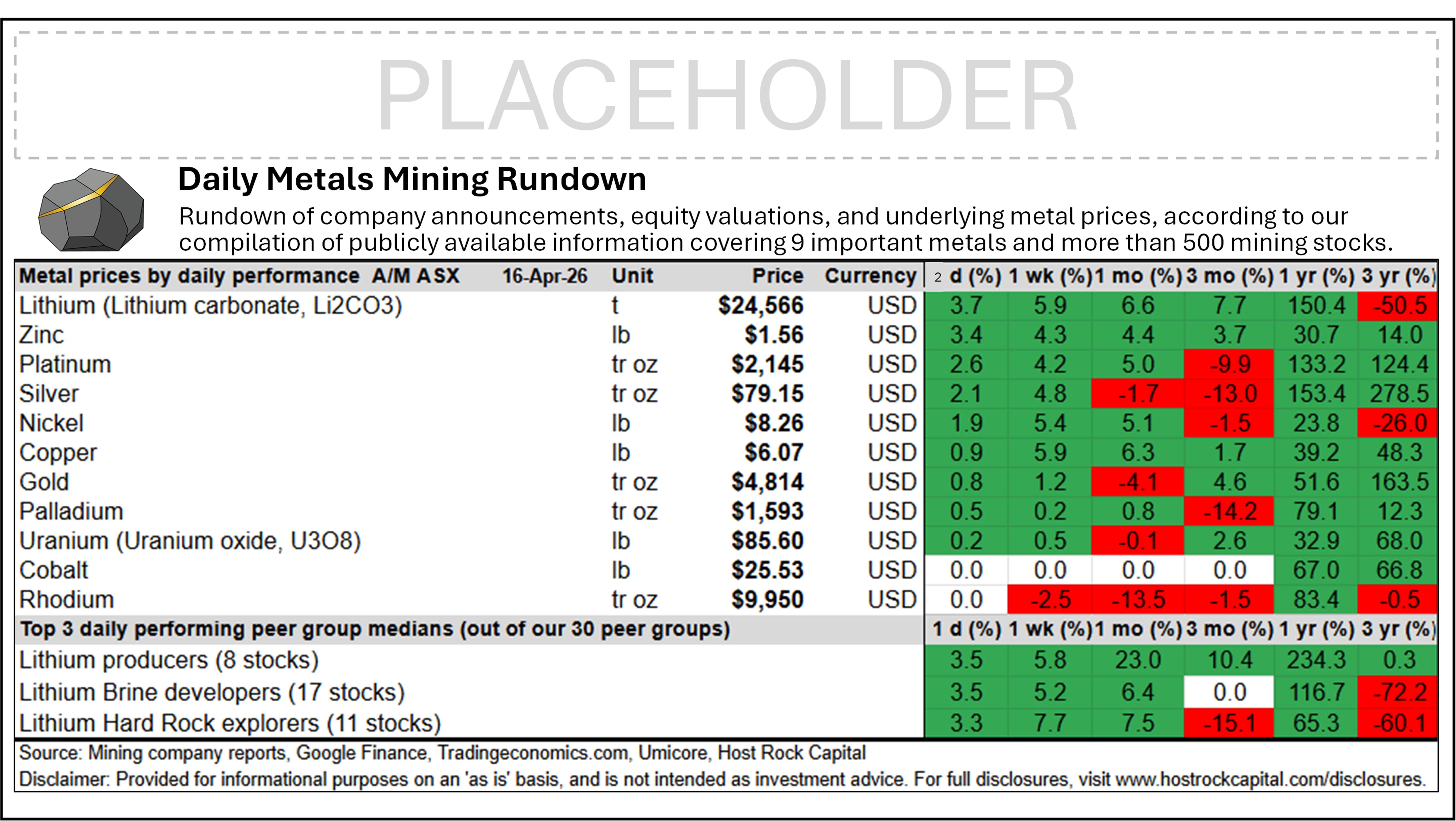 Daily Metals Mining Rundown for 16 Apr 2026 (after-market ASX)