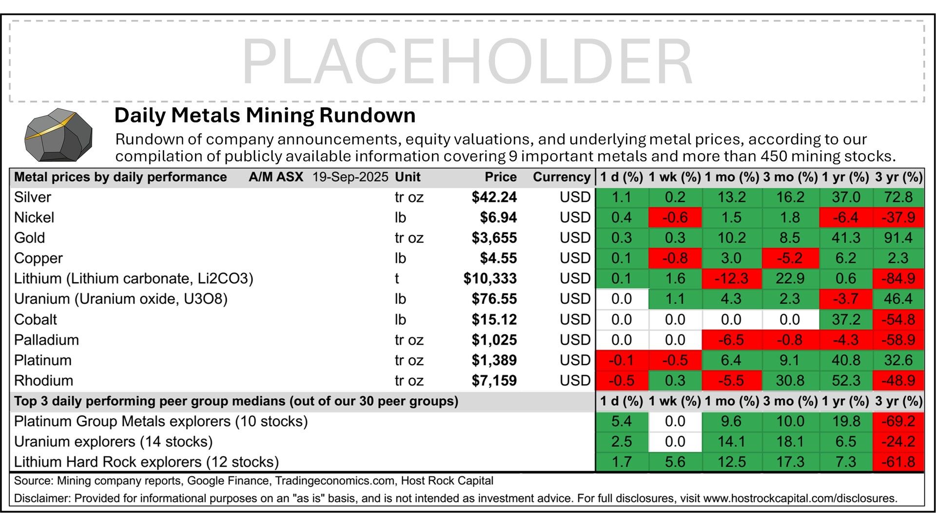 - Daily Metals Mining Rundown for 19 Sept 2025 (after-market ASX)