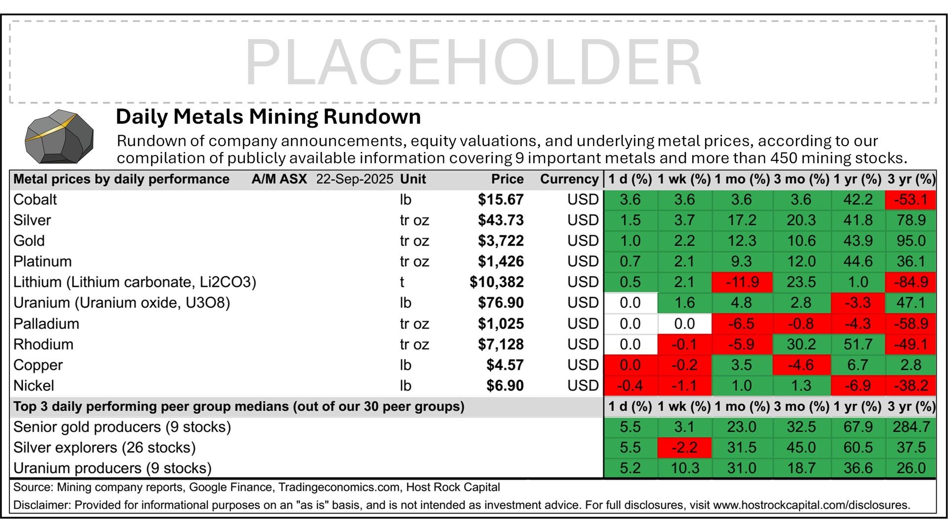 - Daily Metals Mining Rundown for 22 Sept 2025 (after-market ASX)