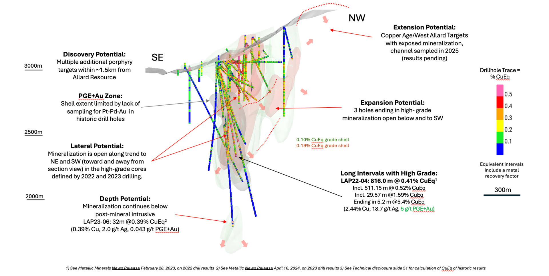 Copper explorer Metallic Minerals Corp (TSXV:MMG) announced yesterday (26 Jan) an updated inferred resource for its La Plata copper-silver project in southwest Colorado, which grew tonnage by 23% to 181.4 Mt @ 0.36% CuEq, including a pit-constrained 136 Mt @ 0.35% CuEq. Together with MMG’s Keno silver project in Yukon, company mineral resources grew by ~15% to 1.8 Blbs CuEq, which are 73% from Cu by metal value, 18% from Ag, rest Au-Pd-Pt-Zn-Pb at 3-month trailing average metal prices. MMG stock traded up +6.8% intraday (26 Jan) following this news, to C$0.40/sh, market cap C$83m, and market cap/lb resource of US$0.034/lb CuEq ($27/oz AuEq) – a 76% discount to our 39-company copper explorer peer group median US$0.044/lb CuEq resource.