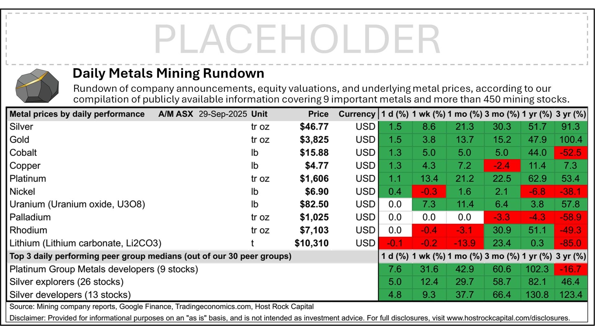 - Daily Metals Mining Rundown for 29 Sept 2025 (after-market ASX)