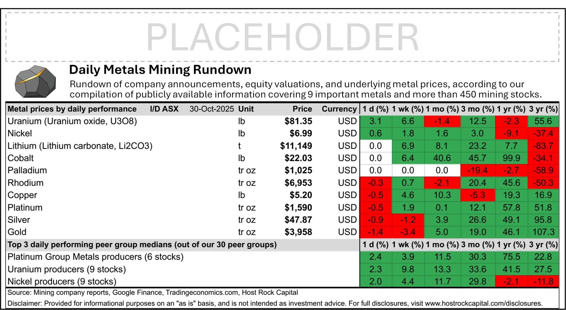 - Daily Metals Mining Rundown for 30 Oct 2025 (intraday ASX)