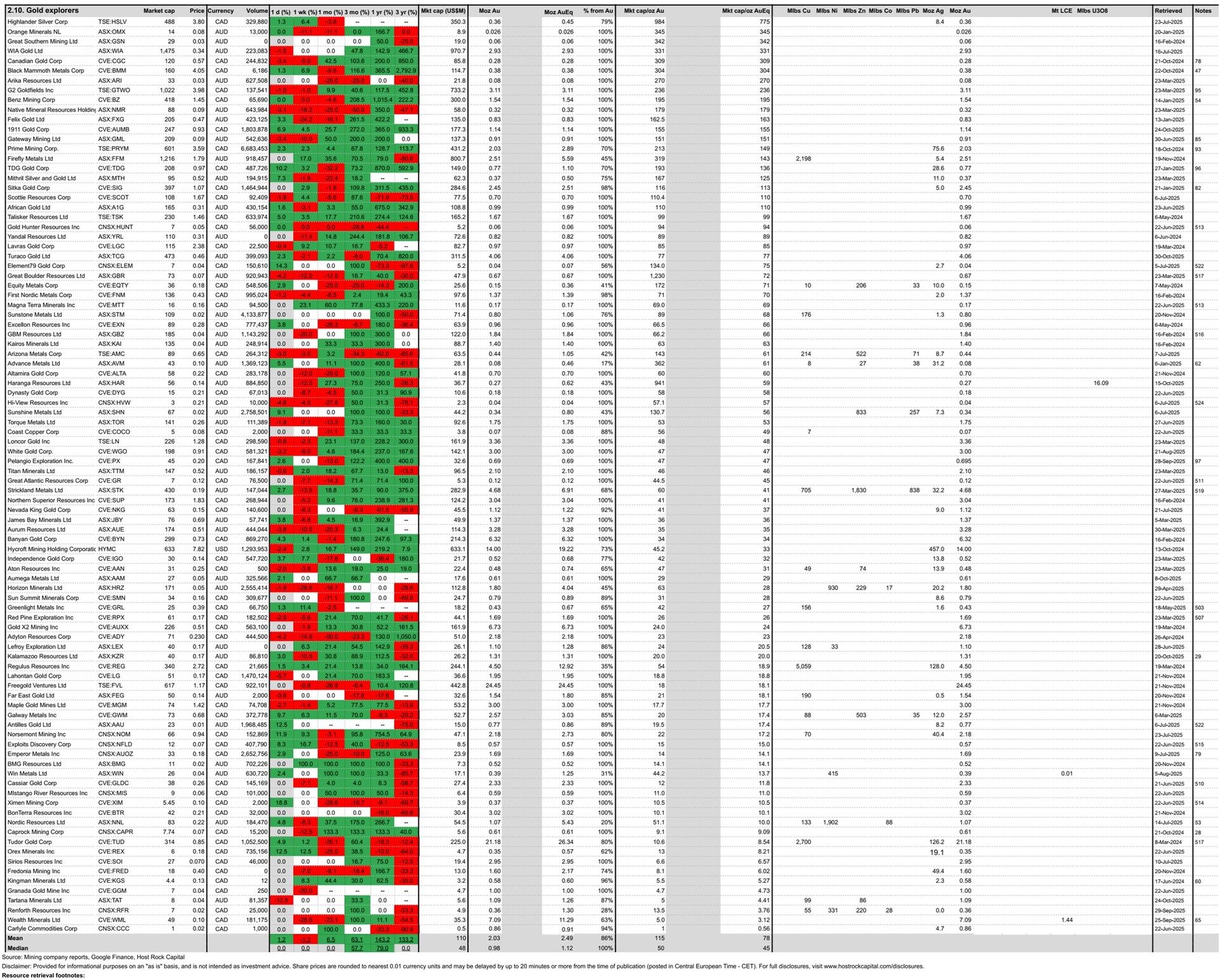 30 Oct 2025 - Gold explorer Turaco Gold (ASX:TCG) announced an updated mineral resource estimate for its flagship Afema project in Cote d’Ivoire, which grew ounces by 14% to 4.06Moz - and at a higher grade of 1.2 g/t Au. And this excludes 11,000m of drilling recently completed to be incorpprated in another update Q1/26 which will form basis for PFS due Q2/26. TCG stock rose +3.4% intraday today (30 Oct) on this news, to 45.5c/sh, market cap A$479m, and market cap/oz of US$77/oz Au - in between our 92-company gold explorer peer group median $45/oz and mean $78/oz AuEq (sounds cheap given its large size and near-development stage).