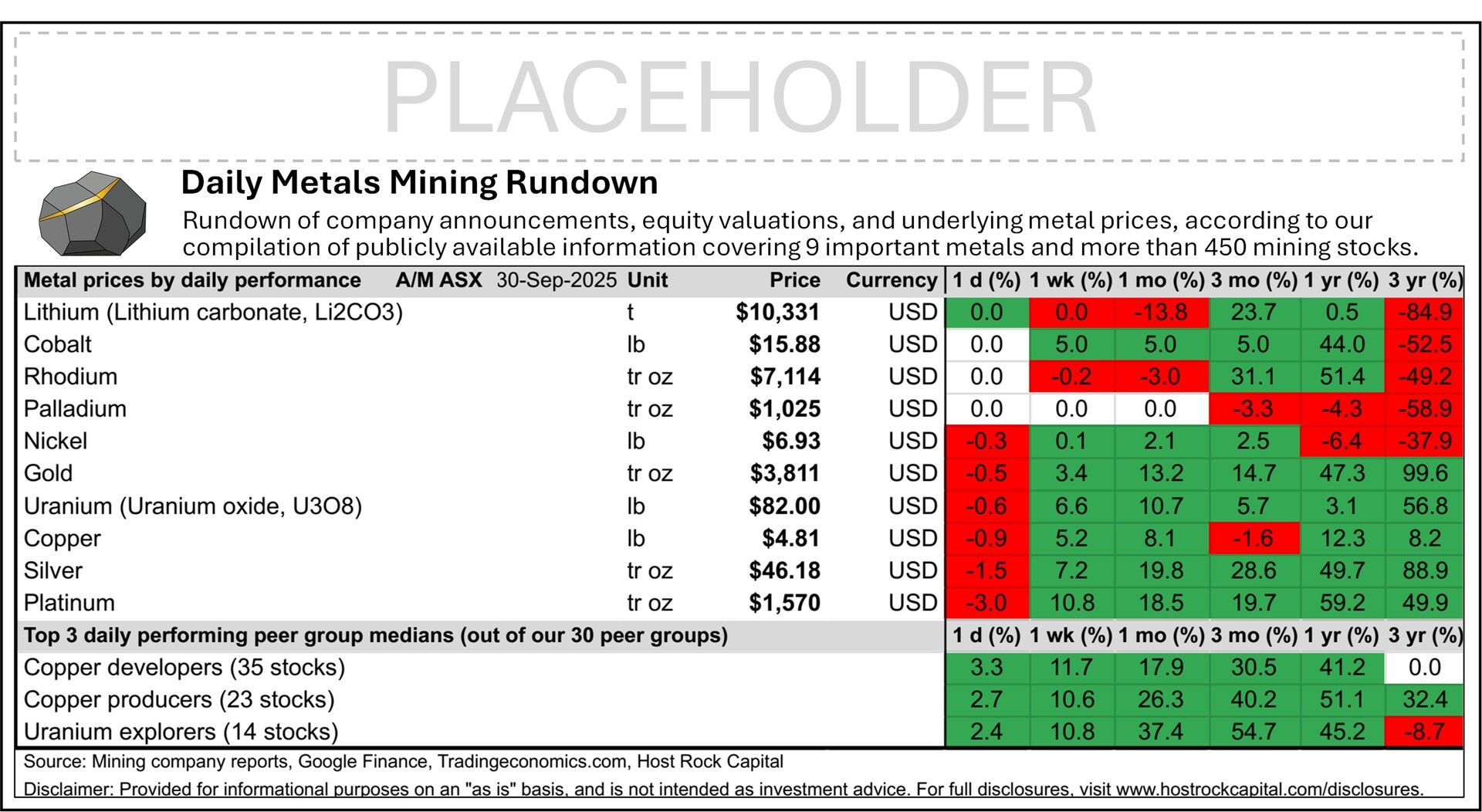 - Daily Metals Mining Rundown for 30 Sept 2025 (after-market ASX)